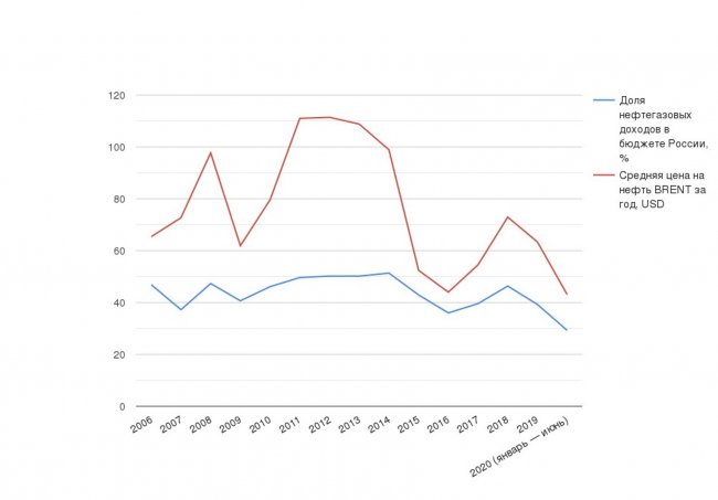 В 2020 году из-за пандемии COVID-19 нефть резко подешевела и вместе с этим сократилась доля российских нефтегазовых доходов. Как сообщил в октябре бюллетень НИУ ВШЭ «Комментарии о государстве и бизнесе», в январе–сентябре нефтегазовые доходы уменьшились на 36% по сравнению с соответствующим периодом предыдущего года.
