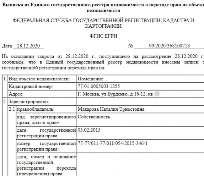 Младшая дочь парламентария, 22-летняя Александра Макарова, по данным The Insider, прописана в доме на ул. Бурденко, д. 16/12. Недалеко от этого дома часто паркуется и Lexus депутата, следует из утечки архива столичных платных парковок. Квартирой в этом построенном еще до революции доме с 2015 года владеет бывшая супруга депутата Наталия Макарова.