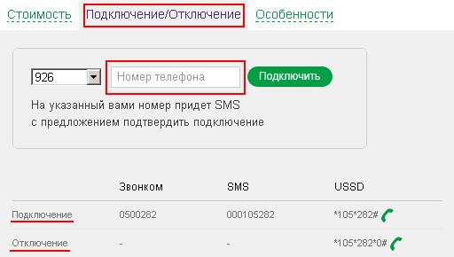 - подключить функцию в онлайн-режиме можно только авторизировавшись в «Личном кабинете» на сайте.