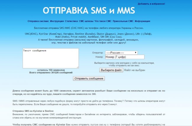 Фото: сервис otpravsms.ho.ua