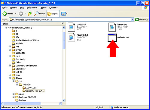 - разархивируйте redsn0w и прошивку в созданную папку;
