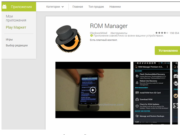 - находим приложения, которые позволяют прошить Андроид. Рекомендуется использовать приложения Rom Updater или Rom Manager;