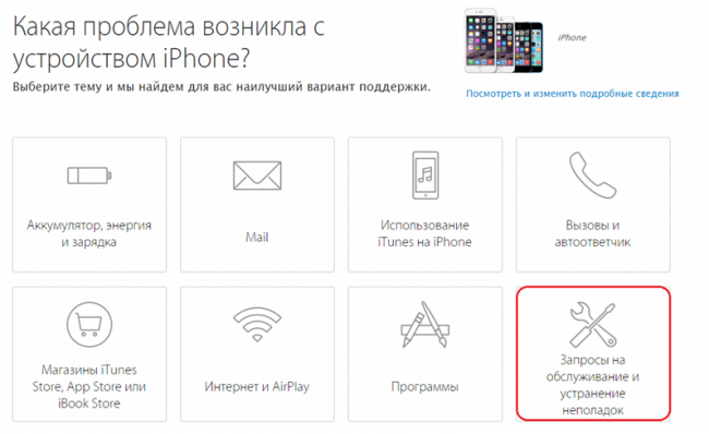 - перейти по адресу www.apple.com/ru/support/contact/;