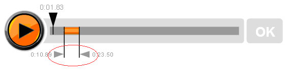 - далее появится mp3 нарезчик, где с помощью нижних стрелок необходимо указать начало и конец вырезаемой части трека;![]() Фото: установка начало и конца вырезаемой части