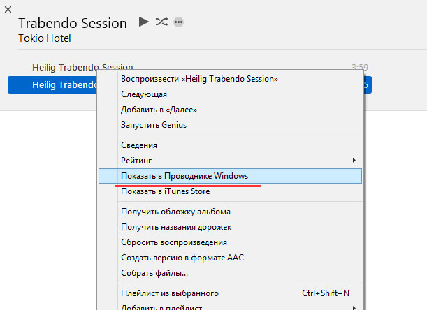 - далее во вкладке «Моя музыка» появится дубликат файла.Фото: конвертирование в Асс Фото: дублирование файла По дубликату необходимо кликнуть правой кнопкой мыши и выпадающем списке выбрать пункт «Показать в проводнике», после чего откроется папка с данным файлом. ![]() Фото: показать в проводнике