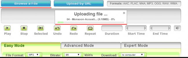 - далее необходимо кликнуть на вкладку «Upload» и выбрать нужный mp3 файл;