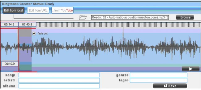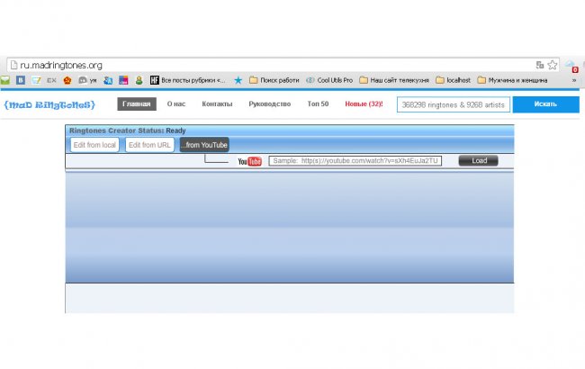 Mad Ringtones бесплатный и не требующий регистрации сервис для того, чтобы сделать музыку рингтоном. Главной отличительной чертой сервиса является то, что он может загружать файлы не только с компьютера, но и прямиком с YouTube. Достаточно лиши скопировать необходимую ссылку в специальное окно.