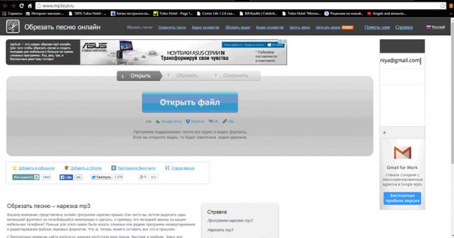 - в первую очередь необходимо перейти на сайт сервиса www.mp3cut.ru;