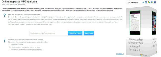 - необходимо перейти на сайт Make Own Ringtone http://makeownringtone.com/;