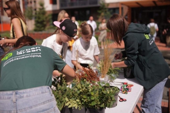 Здесь же и взрослые, и дети создавали цветочные композиции под руководством дизайнеров компании «Urban Green», известной по организации фестиваля ландшафтного искусства «Атмосфера».