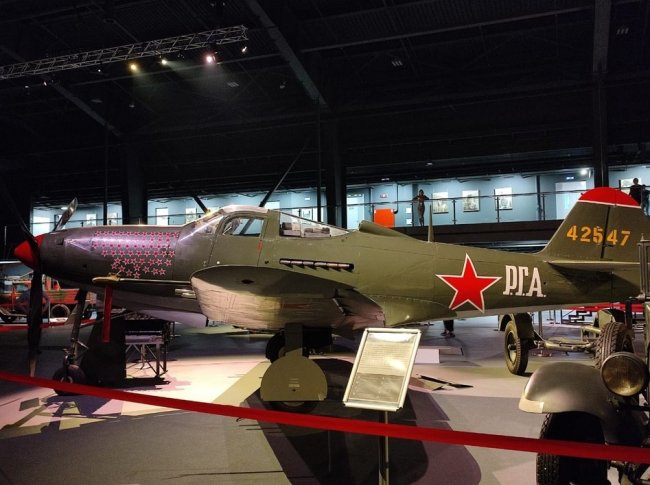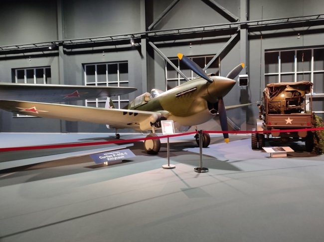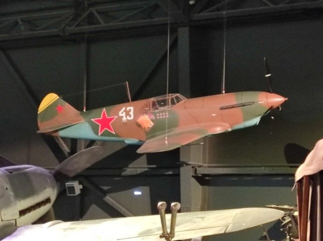 На фюзеляже этого самолета 56 звезд. Это самый звездный самолет, который тут представлен. Именно столько вражеских самолетов сбил [b]Григорий Речкалов, уроженец города Ирбит Свердловской области, за годы ВОВ, летая на американской «Кобре». По этому показателю он первый среди советских летчиков.
