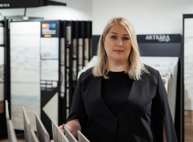 По словам Надежды Лукиной, в этом году большой популярностью у покупателей пользуется керамогранит — в общем объеме продукции доля продаж керамогранита выросла до 55%, если сравнивать третий квартал 2023 г. с аналогичным периодом прошлого года. А самым популярным стал крупноформатный керамогранит размером 1200х600 и 600х600 мм — каждый месяц продается около 1 тыс. кв. м.