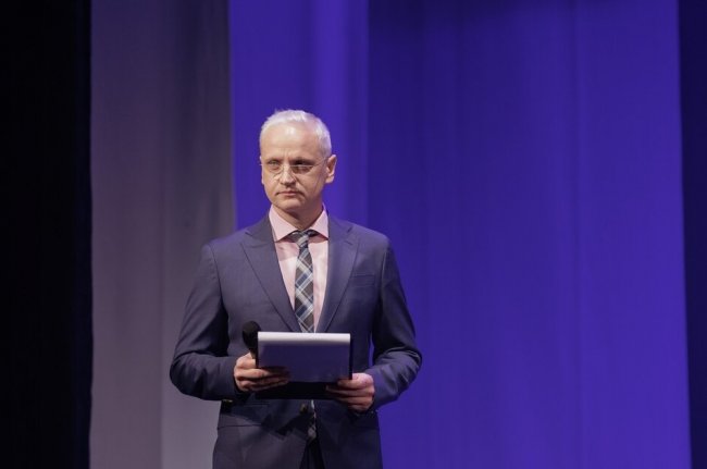 Приветственное слово от главы Екатеринбурга Алексея Орлова, который не смог лично присутствовать на церемонии, на сцене зачитал Евгений Копелян, начальник городского департамента промышленной и инвестиционной политики.