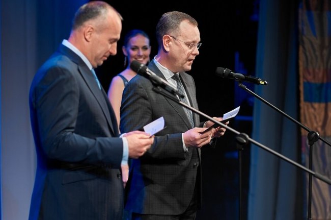Для оглашения имен победителей на сцену поднялись Сергей Мазуркевич, генеральный директор «Уральского горнопромышленного холдинга», и Алексей Долгов, президент Уральского банка реконструкции и развития, лауреат премии 2021 г.