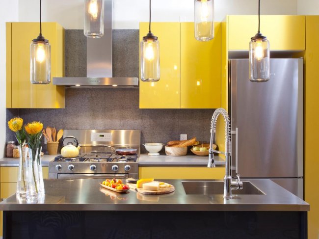 В этом случае стальной лист толщиной 0,8 мм накладывают на лист ДСП, а края загибают на специальном прессе, заваривают, шлифуют. Такие столешницы долговечны, очень устойчивы к влаге, различным моющим средствам, к механическим повреждениям, но стоит учитывать, что постепенно металл может потускнеть, да и отпечатки пальцев портят внешний вид.