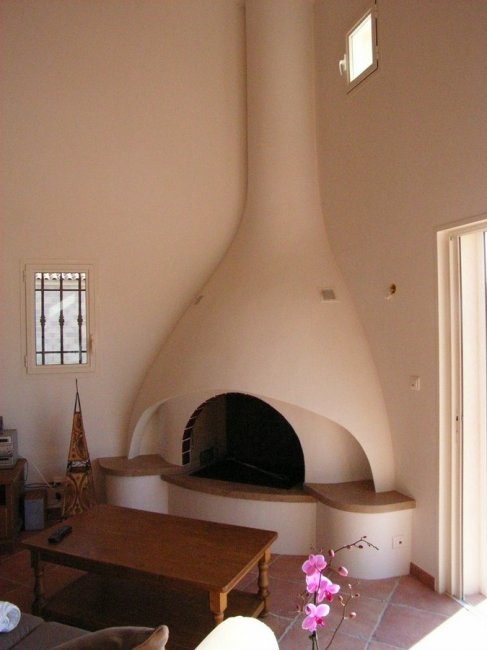- Камины на природном топливе (дрова, газ, пеллеты) требуют обязательного оснащения дымоходом для обеспечения вытяжки продуктов горения, поэтому их установка возможна только в частных домах.