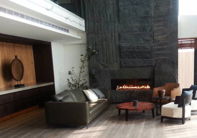 - Так как островной камин занимает много места, его лучше устанавливать в просторных помещениях: в интерьере современной гостиной или холла, а также применять при зонировании.