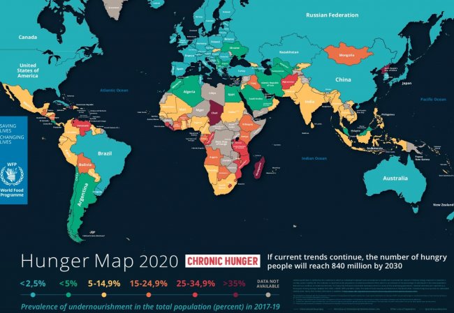 К сожалению, пока ситуация только усугубляется. В 2019 году в мире было 690 млн голодающих, что на 10 млн больше 2018-го и на 60 млн больше, чем пять лет назад. Если этот тренд продолжится, то к 2030 году голодающих будет 840 млн человек. Более того, пандемия COVID по предварительным оценкам добавит к этим цифрам еще 83-132 млн человек.