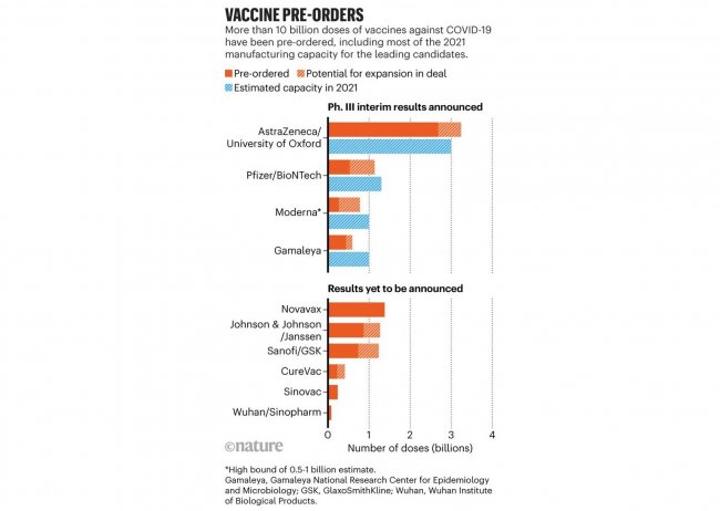 В этом году темп развертывания производственных мощностей для новых вакцин был беспрецедентным. Так, Pfizer обещает до нового года произвести 50 млн доз (до ноября, правда, речь шла о 100 млн, но вмешались те самые проблемы с масштабированием), а в 2021 году говорится об 1,3 млрд доз.