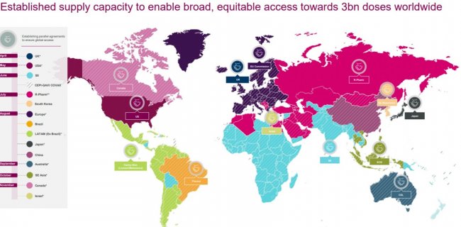 Лидер по прогнозам поставок вакцин в мире – AstraZeneca, она собирается произвести до 3 млрд доз в 2021 году: