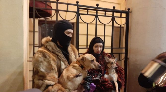 В Питере задерживают даже с собаками. Этих молодых людей увели вместе с животными в автозак.