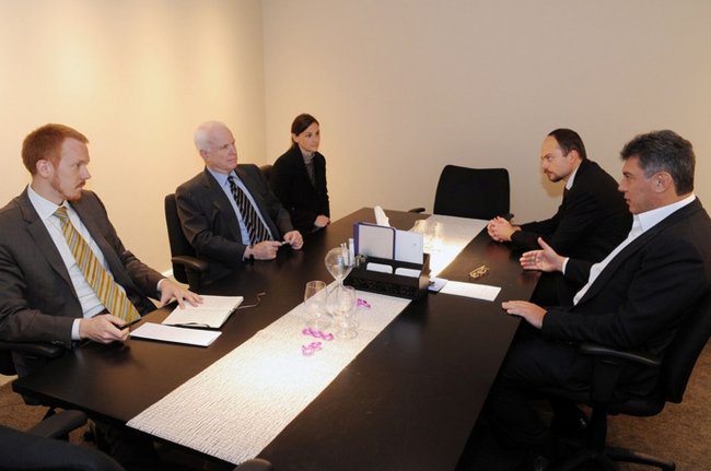 Первая встреча по «закону Магнитского»: 15 ноября 2010 года Борис Немцов, Владимир Кара-Мурза и американский сенатор Джон Маккейн в переговорной комнате вашингтонского W Hotel