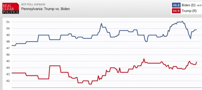Чисто математически Трамп может выиграть и без Пенсильвании, если возьмет Висконсин или Миннесоту, но учитывая, что там отрыв у Байдена еще больше, в это сложно поверить.