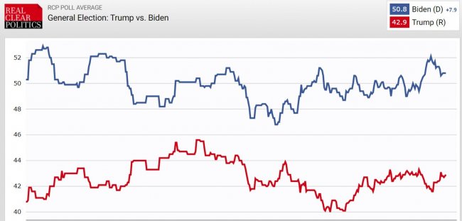 Байден, со своей стороны, припоминает Трампу, что тот выступает против Obamacare — принятой при Обаме программы здравоохранения, которая в США очень популярна. Вообще для черного пиара Трамп просто идеальный кандидат: ему припоминают и расизм, и неуважение к женщинам, и то что на поле для гольфа он проводит больше времени, чем в Белом доме, и то, что он так и не показал свою налоговую декларацию (Трампа обвиняют в уклонении от уплаты налогов), и конечно же то, что Трамп не смог эффективно отреагировать на эпидемию (в США от коронавируса погибли больше 200 тысяч человек, страна находится в первой десятке по числу погибших на миллион жителей и на первом месте по общему числу заболевших, в день заболевает по 60 тысяч человек).