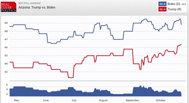 В Аризоне, где отрыв Байдена еще недавно был довольно уверенным, сейчас он сократился до 2,5%, что также делает позиции демократа шаткими: