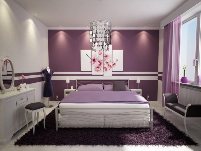 Так, спальня со светлой мебелью в интерьере удачно дополняется легкими и светлыми пастельными тонами обоев, штор или коврового покрытия.