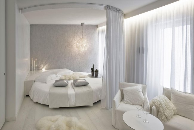 В оформлении светлой спальни часто используют белый цвет. Но при этом следует соблюдать осторожность. Неграмотное и обильное применение белого цвета может создать ощущение холодной и нежилой комнаты. Если же интерьер оформлен правильно, то такие детали привнесут в помещение атмосферу спокойствия и умиротворения.