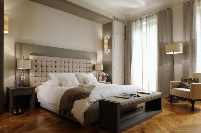 Дизайн спальни со светлой мебелью выигрывает при таких цветовых оттенках: